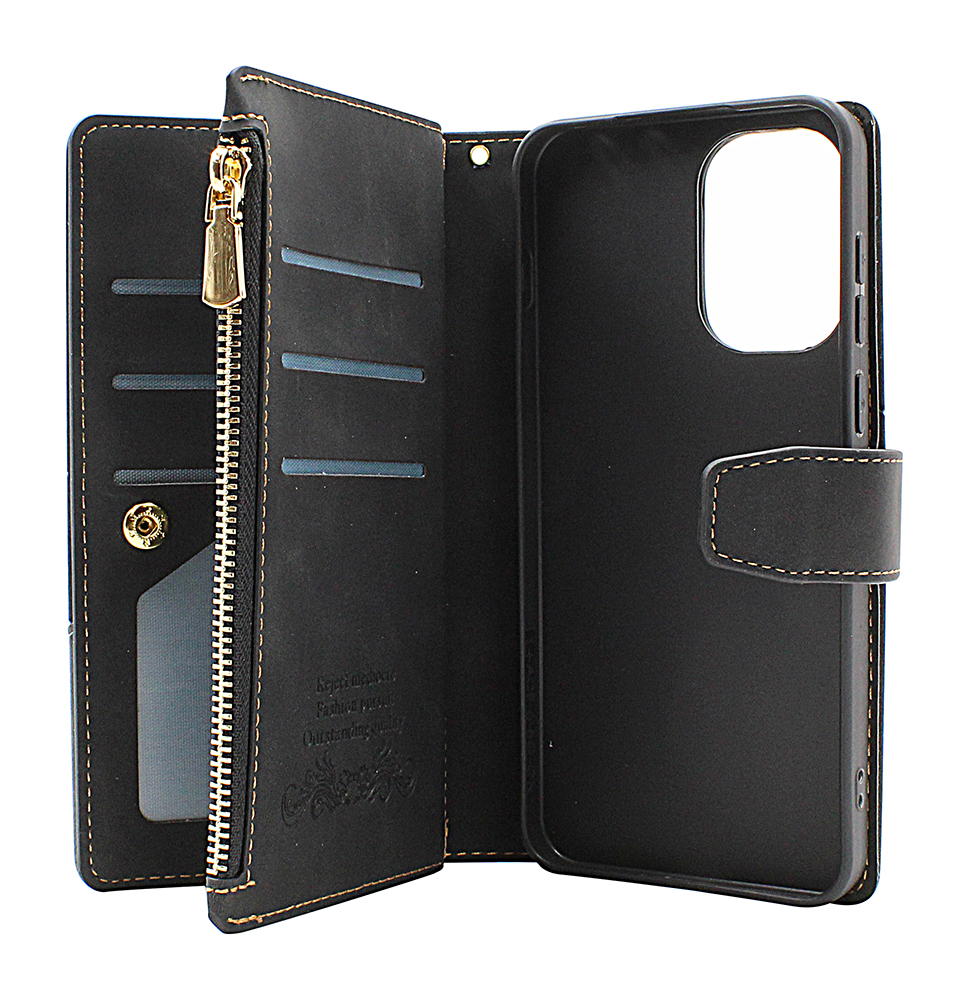 Detta lyxiga plånboksfodral kombinerar elegant design med smart funktionalitet. Med hela 9 kortfickor, stativfunktion och dragkedjefack är det ett perfekt val för dig som vill bära mobil, kort och småsaker i ett och samma fodral.