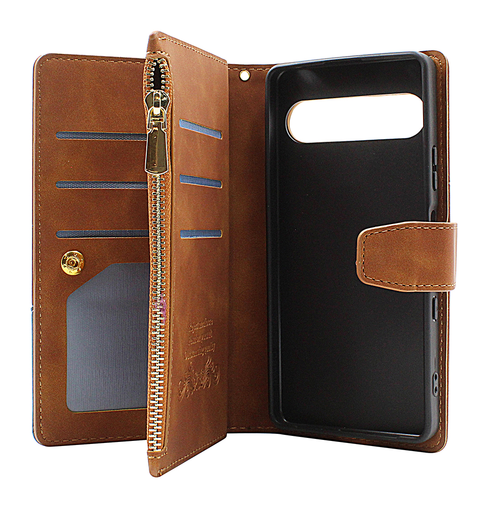 Detta lyxiga plånboksfodral kombinerar elegant design med smart funktionalitet. Med hela 9 kortfickor, stativfunktion och dragkedjefack är det ett perfekt val för dig som vill bära mobil, kort och småsaker i ett och samma fodral.